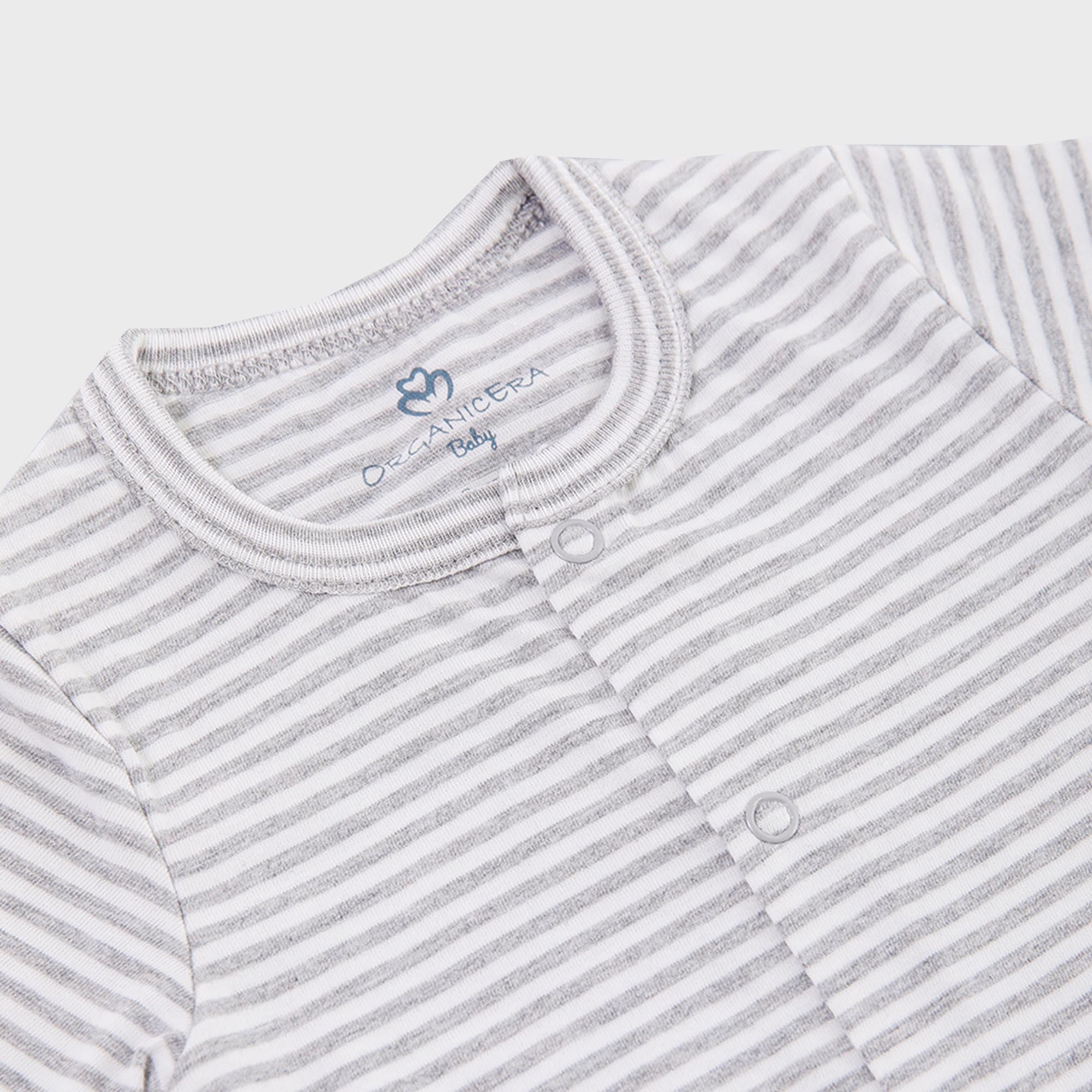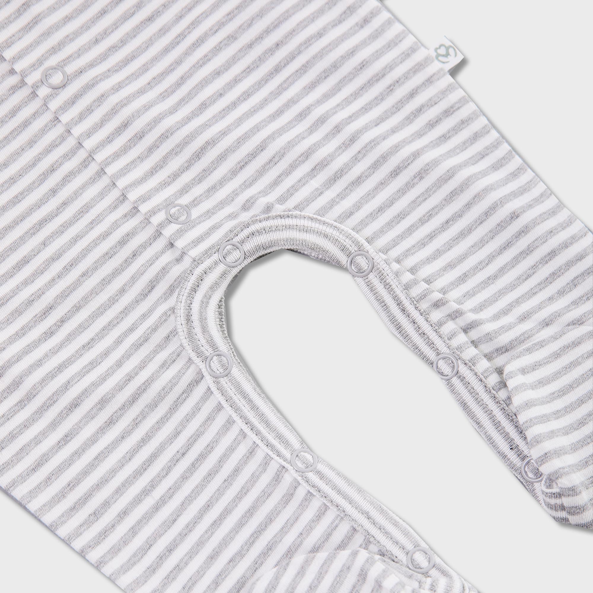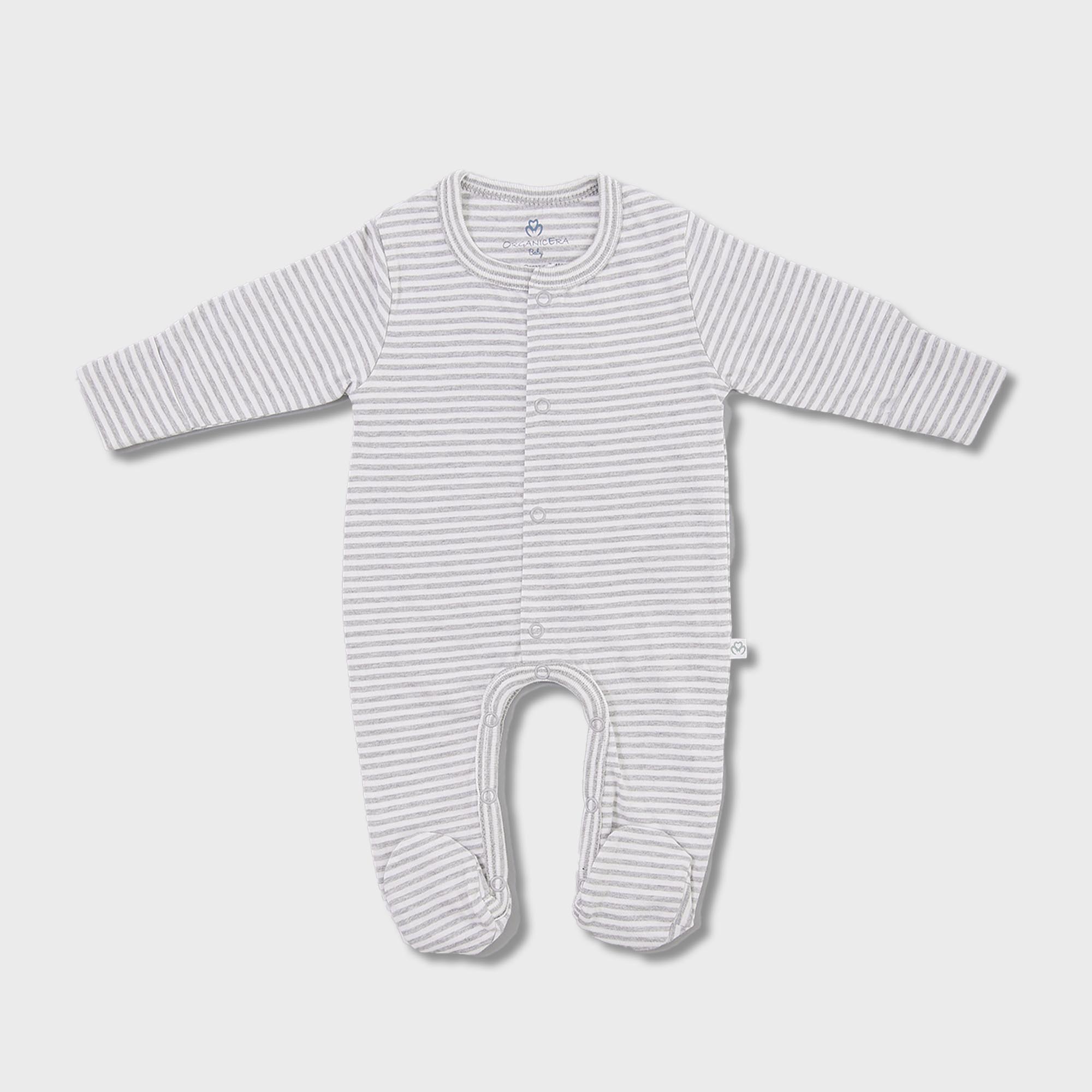 OrganicEra Organic Baby Footed Sleepsuit, Striped, Grey Melange
