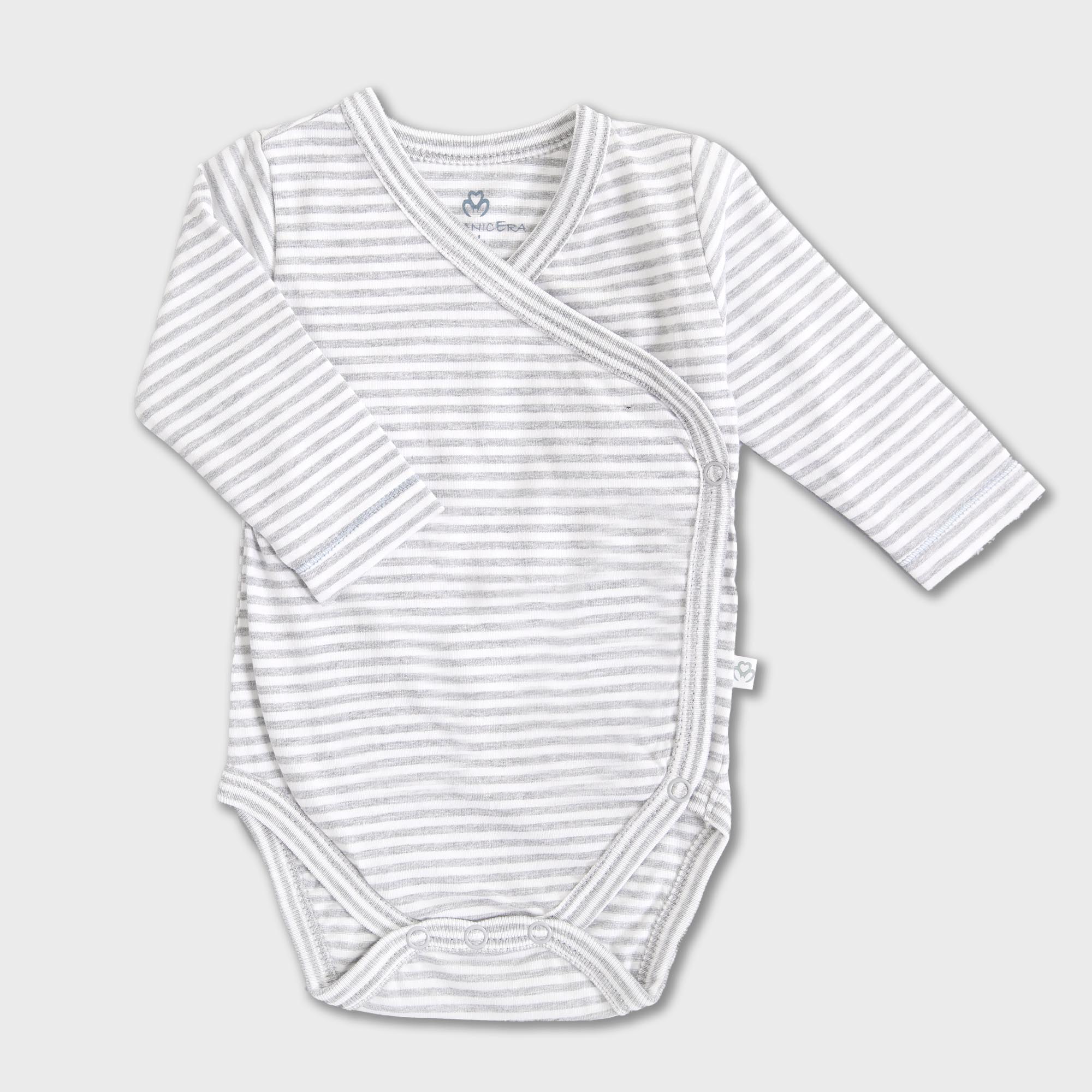 OrganicEra Organic Long Sleeve Newborn Kimono Baby Body, Striped, Grey Melange