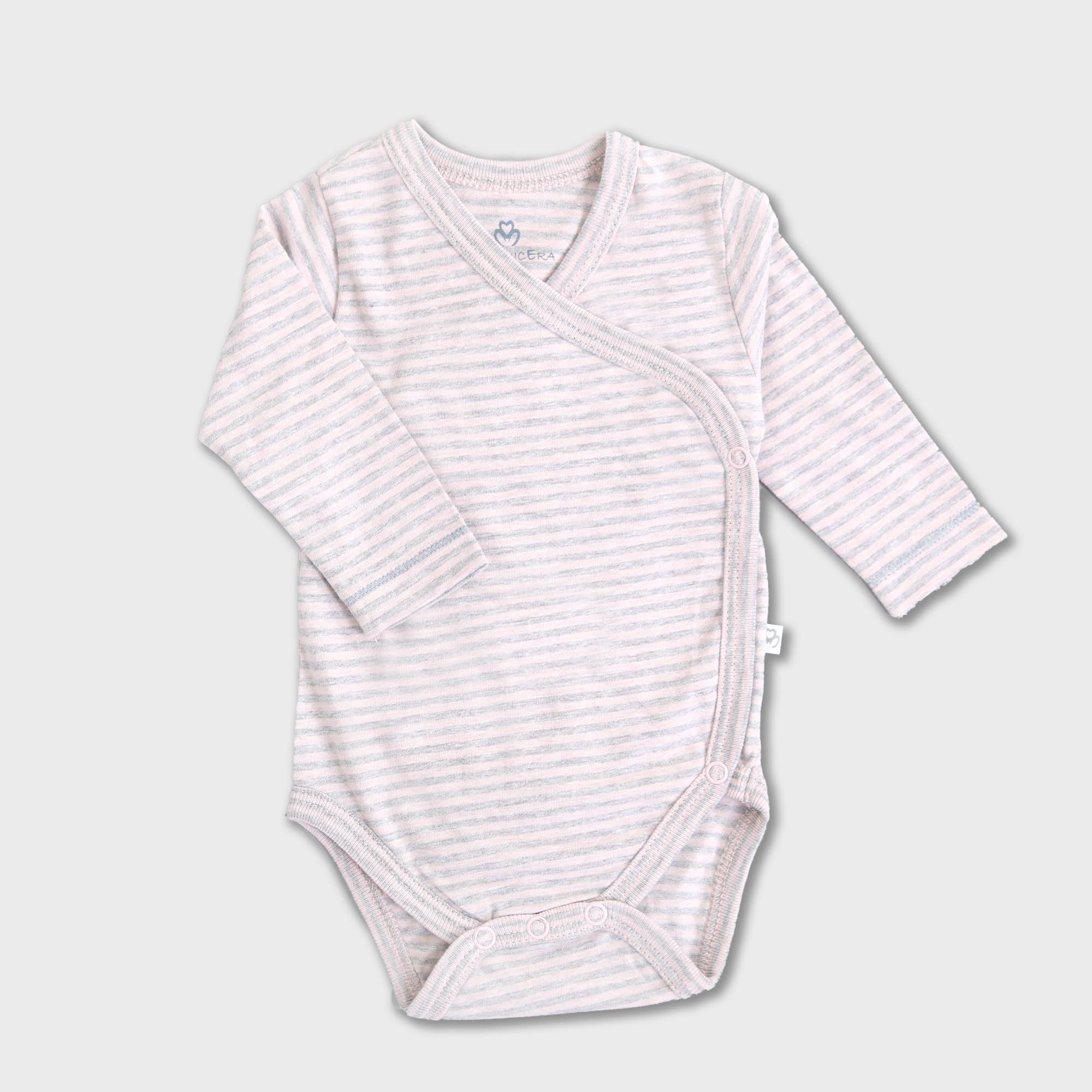 OrganicEra Organic Long Sleeve Newborn Kimono Baby Body, Striped, Rose Melange