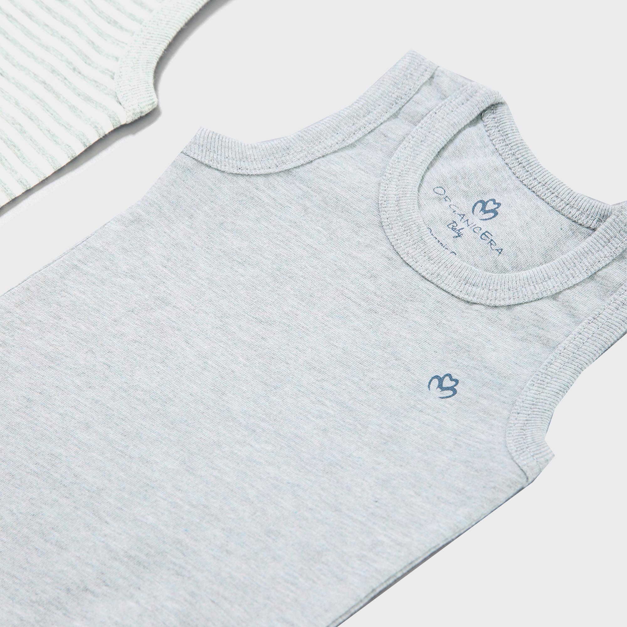 OrganicEra Organic Newborn Baby Sleeveless Bodysuit, 2 pcs Set, Aqua Melange
