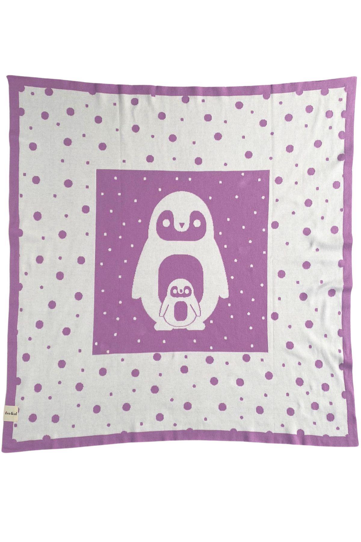 OrganicEra Organic Tricot Knit Baby Blanket, Penguen (80X90 cm), Lilac