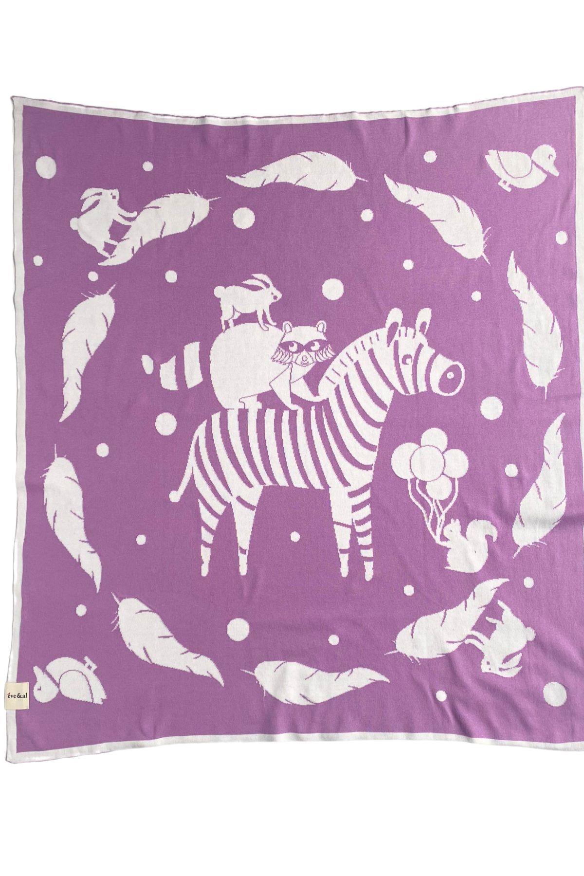 OrganicEra Organic Tricot Knit Baby Blanket, Zebra (80×90 cm), Lilac